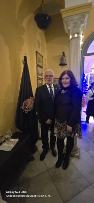 La noche del 12 de Diciembre fue una noche muy especial por dos razones, una por que la HNME fue invitada a la Gala Navideña de la Academia de la Diplomacia del Reino de España de Sevilla, representada por su Vicepresidente Don Jose Carlos Ruiz Verdejo y Sigurtá y otra por el maravilloso espectáculo musical versado en temas navideños tocados al piano y cantados por una excelente soprano y un inmejorable tenor.